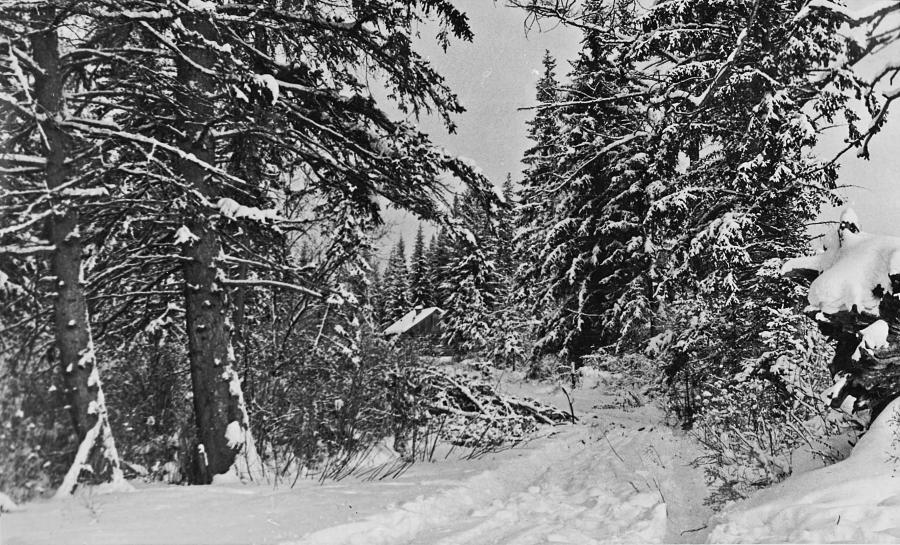 Первые дороги по зимнему пути, в стороне зимовье охотников. Так начиналась легендарная трасса Братск-Усть-Илимск.