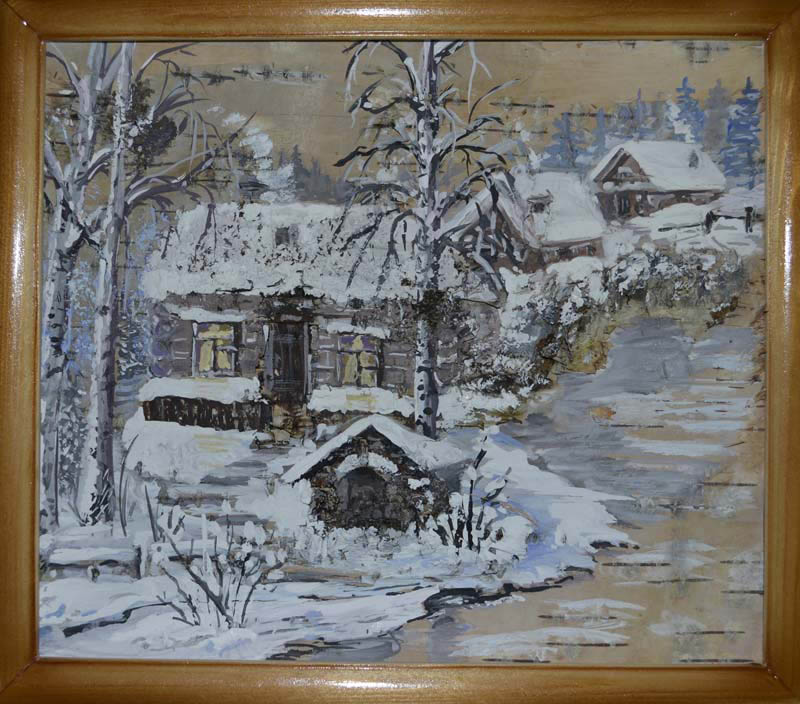 Аза Петровна не только увлекается живописью, она самобытный и талантливый мастер-резчик по дереву. Береста также покорилась золотым рукам мастерицы. Роспись по бересте известна на Руси с XV века, однако сегодня этим занимаются немногие, потому что это слишком тонкая работа. Природа «расписывает» бересту по своему усмотрению, украшая причудливыми наплывами, завитками и сочетаниями штрихов. Не каждый может создать свое полотно, не нарушив гармонии естественного рисунка. Сюжет картин рукодельницы диктует сама природа - пейзажи, жанровые композиции, православная тематика. При взгляде на картины остается ощущение чего-то родного и близкого («Домик на окраине», «Залив»).