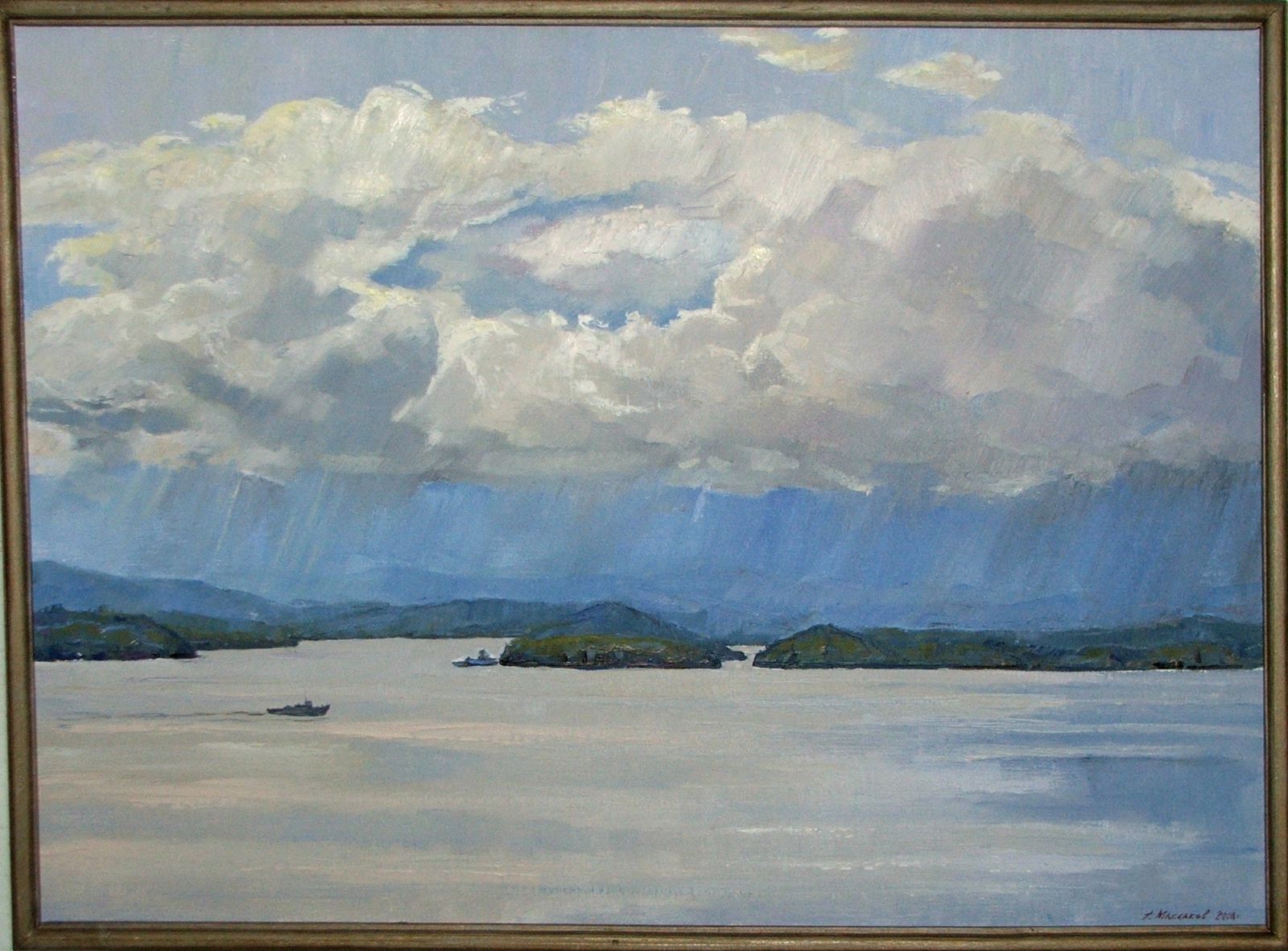 -Сложно сказать. Скорей всего, каждая, над которой тружусь в данный момент. Бывает, что-то зацепит взор, делаешь наброски, этюды. Хочется, как можно быстрей воплотить их. Порой этюдов набирается много, и каждый требует завершения, воплощения в картину. А тему Байкала, природы действительно люблю больше всего. На Байкале у меня живут друзья. Приезжаю к ним летом, садимся в катер и вперед, по Малому морю. Там поражает все - прозрачность воды, глубина, чистота, ширь, какая-то особенная энергетика…. В любое место причалишь и можешь день простоять у мольберта. Спим на катере в каюте. Последний раз на Байкале попали в шторм, который тоже стал толчком для работы. Кажется, закончу пейзаж и возьмусь за что-то другое. Но нет: чувствую, опять что-то зацепило, понравилось. И в очередной раз берусь за пейзаж. В пейзаже я не ограничен, всегда под рукой холст, кисти, мольберт, а больше ничего и не надо. А, скажем, при работе над портретом необходимо договориться с конкретным человеком, натурщиком.