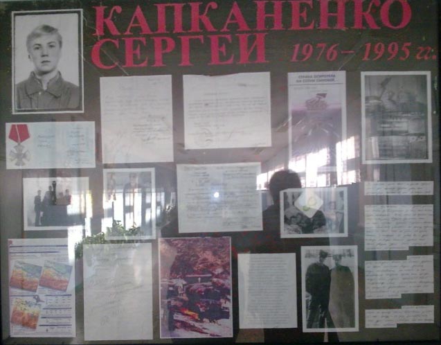 Информационный стенд, посвящённыйКапканенко Сергею Ивановичу установлен в 2010 году в Железнодорожной средней школе №2, где он учился