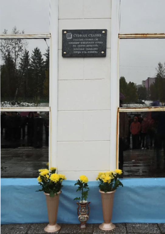 Мемориальная доска Стефану Станеву, командиру болгарского отряда, установлена 14 сентября 2013 года на стадионе «Юбилейный» в День города. Стефан