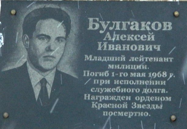 Напившись до помутнения рассудка, рабочий Ершовского леспромхоза Павловский жестоко избил одного из жителей поселка, затем вооружился охотничьим ружьем, взял патронташ и укрылся в доме. Пьяный, да к тому же вооруженный, хулиган был опасен. Младший лейтенант милиции А.Булгаков решил обезоружить его. Пренебрегая опасностью, он смело вошел в дом. В завязавшейся схватке А.Булгаков был тяжело ранен, но, несмотря на это, успел выстрелить из пистолета и убить преступника. От полученных ран Алексей Булгаков скончался. Младшему лейтенанту было двадцать девять лет.