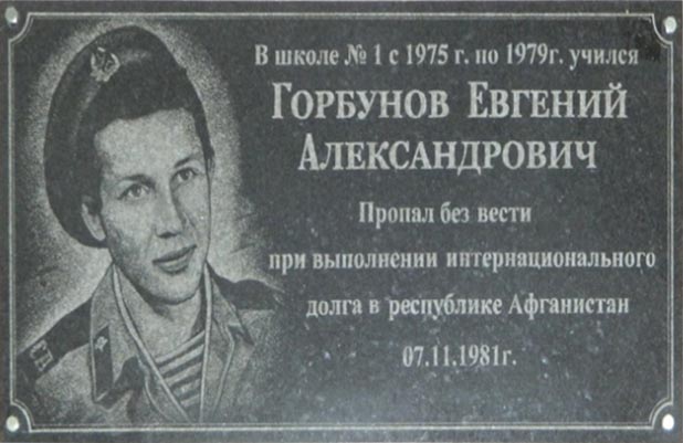 Пропал без вести при выполнении интернационального долга в республике Афганистан 07.11.1981 года.Горбунов Евгений Александрович-рядовой, герой афганской войны (1979-1989).