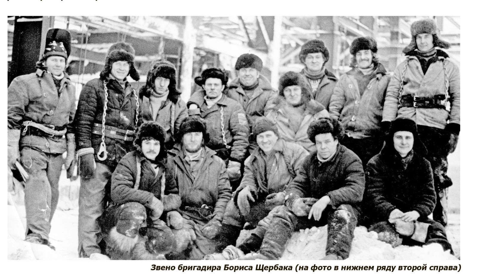 Борис Яковлевич рассказал, что его супруга Надежда Андреевна рабо-тала вместе с ним на строительстве моста. Женщины отмывали болты от ма-зута и сушили их. В бригаде было два бригадира – Борис Щербак и Стани-слав Федоров. В подчинении у них – 100 человек. Работали звеньями по 12 часов. Возглавлял участок Владимир Тищенко. В дружный коллектив мо-стовиков вливались ребята, которые только что демобилизовались из армии. Сразу втроем на Всесоюзную ударную комсомольскую стройку Усть-Илимской ГЭС приехали Алексей Кетрарь, Виктор Козыченко, Иван Янюк. «Крепкие смелые парни в солдатских гимнастерках подобно паукам вязали из металла ажурные кружева моста на 40-метровой высоте над бурлящей Ангарой», – образно рассказывает мой герой.