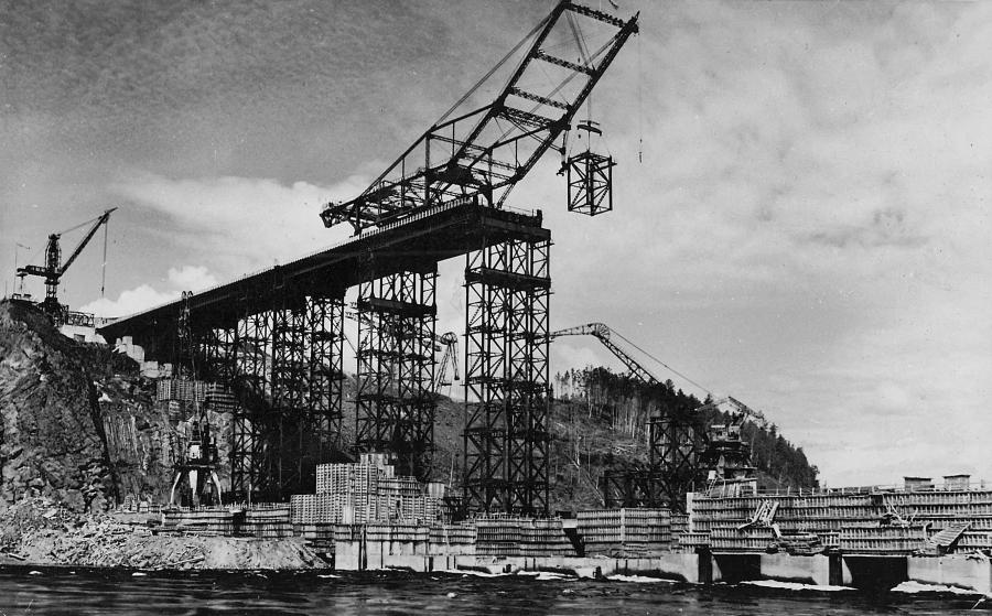 1971 год. Монтаж большой бетоновозной эстакады. Спуск пилона