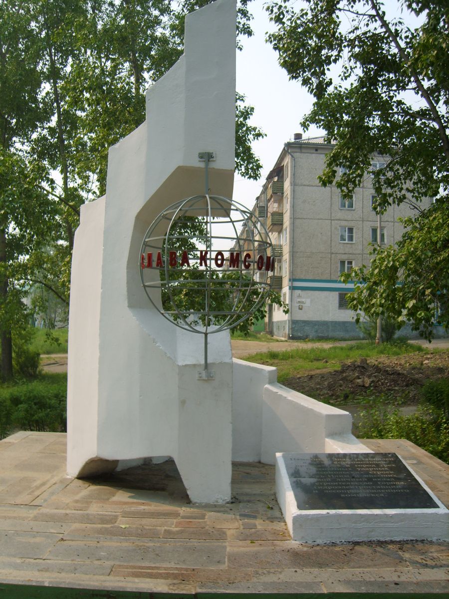 Другая известная стела комсомольской тематики - «Письмо к молодежи 21 века». Памятник представляет собой бетонное сооружение – знамя и сфера, в которой хранилась капсула с письмом-обращением комсомольцев 80-х годов XX века к комсомольцам 2018 года. Памятник установлен на площадке в форме равностороннего треугольника, ограниченной барьером из бетона. Вход на площадку в середине одной из сторон, оборудован ступенями. В средней части этого основания расположена композиция в виде завернутого по спирали стилизованного знамени, внутри которого и распложена сфера в виде земного шара—символа дружбы, мира, символа того, что Усть—Илимск возводили строители из стран, входящих в состав СЭВ. Полотно стилизованного знамени сделано в виде ступенек. Каждая ступенька— интеротряд, который словно вливается в общий поток и образует единое целое. Авторы постарались передать идею того, что только объединившись всем вместе, можно построить гигант на Ангаре. В настоящее время Памятный знак частично разрушен, сфера с письмом в капсуле утрачена. На снимке - копия.