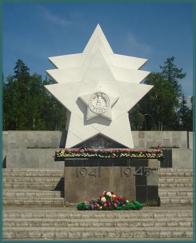 Памятный знак, посвященный 40-летию Победы Советского народа над фашистской Германией. Он представляет собой бетонный мемориальный комплекс, в составе которого три звезды с боевым орденом и Орденом Трудовой Славы. Мемориальные мраморные доски с фамилиями ангарских и илимских воинов, погибших в годы Великой Отечественной войны. Автор проекта – архитектор Маргарита Андреевна Аруцева-Лаур. Работы по сооружению Памятного Знака велись с 1985 года.