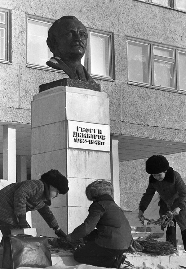 Георгий Димитров (1882-1949), болгарский коммунист, которого нацисты обвинили в поджоге рейхстага. Родился 18 июня 1882 в Радомире в Болгарии. Работал печатником. Еще в молодые годы примкнул к коммунистическому движению и вступил в Болгарскую социал-демократическую партию. Неоднократно арестовывался властями. 9 сентября 1982 г. на площадке перед школой № 10 собрались на торжественный митинг школьники и учителя, жители города, руководители предприятий, бойцы отряда имени Димитрова во главе со своим командиром Стефаном Станевым, которого сегодня уже нет в живых.