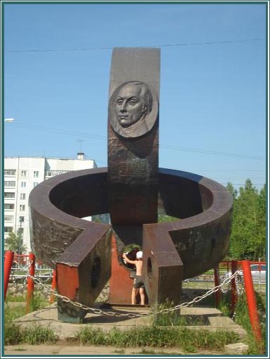 Перед «Яросамой» возведен Памятный знак А.Н.Радищеву. (ФОТО41).Композиция из двух кандалов, выполненная из листового металла, покрыта кованой медью с чеканкой на боковых поверхностях. Авторы проекта: архитекторы Ольга Ивановна Кучинскаяи Татьяна НиколаевнаКочмина. Их работу – стелу «Письмо комсомольцам…», вы уже видели в Старом городе.На памятнике барельеф А.Н.Радищеву и его слова: «Ты хочешь знать, кто я? Что я? Куда я еду? Я тот же, что и был. И буду весь мой век. Не скот, не дерево, не раб, но человек! В острог Илимский еду». На боковых поверхностях изображены остроги и обозначен путь следования Радищева в ссылку в Илимский острог (Петербург, Новгород, Москва, Казань, Пермь, всего 5 894 версты). Кроме того, здесь же размещены барельефы и именные вензеля Екатерины и Павла с выдержками из их указов об отправке в ссылку и освобождении из нее. Основание из бетона высотой 30 см. памятник обнесен оградой из шести металлических столбов.