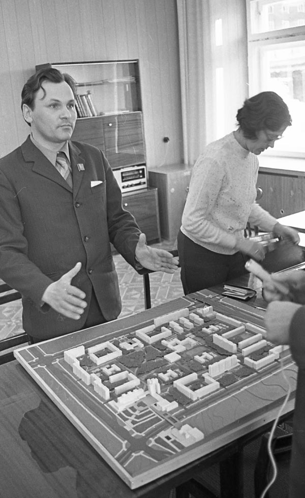 Первые крупнопанельные дома были построены на улице 50 лет ВЛКСМ. До этого строители жили во времянках, палатках, бараках. В торце одного из домов работал ЗАГС. Вспоминается такой случай: молодая пара из-за осенней беспутицы подъехала к ЗАГСу не на разукрашенном лимузине, как сейчас, а на тракторе. Жених (водитель) в кирзовых сапогах вынес из своей кабины невесту в белоснежном платье и туфельках. Сам переобулся только в помещении. Такая картина наблюдалась нередко. И в те времена это было нормально.